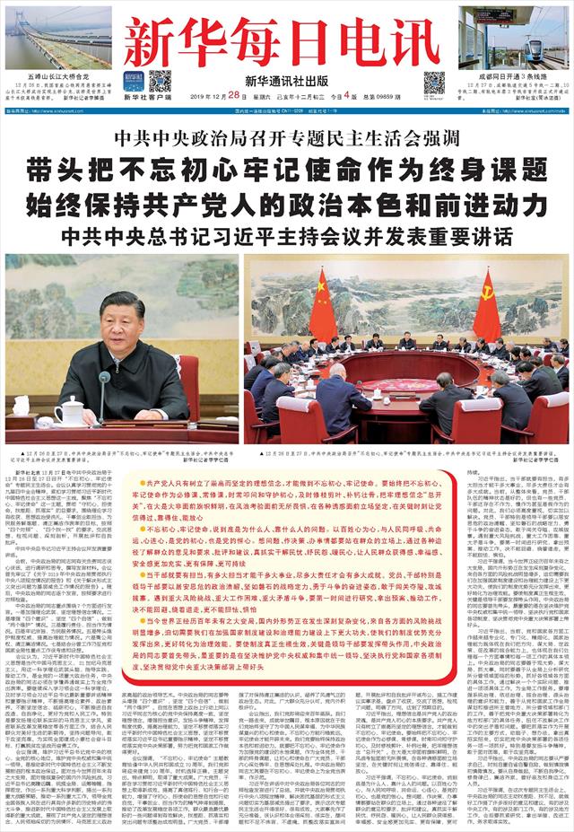 ( 2019-12-28 ) 稿件来源:新华每日电讯 要 闻
