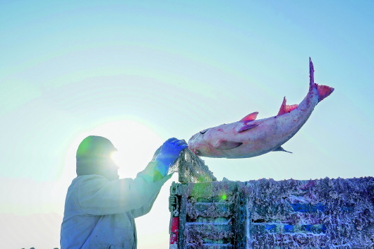零下30摄氏度的天气,站在结冰厚度超过50厘米的湖面上,首先要克服的就是极寒环境的考验。渔民们齐声喊着号子,用长杆沿着冰窟把渔网输送至水里。七八个小时后,在清脆的扬鞭声下,8匹马喘着粗气拉动绞盘,渔网一寸寸从冰窟里浮出水面——数万斤鱼也连蹦带跳地“上岸”了。