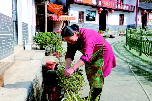 ▲井冈山市茅坪乡神山村村民彭夏英在家门口整修绿植(12月29日摄)。 新华社发