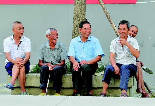 ▲在易地扶贫搬迁安置小区“老乡家园”,搬迁群众在小区里聊天(8月17日摄)。