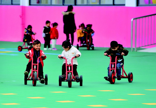 ▲在援建的遂融幼儿园,小朋友们在操场上玩耍(12月30日摄)。