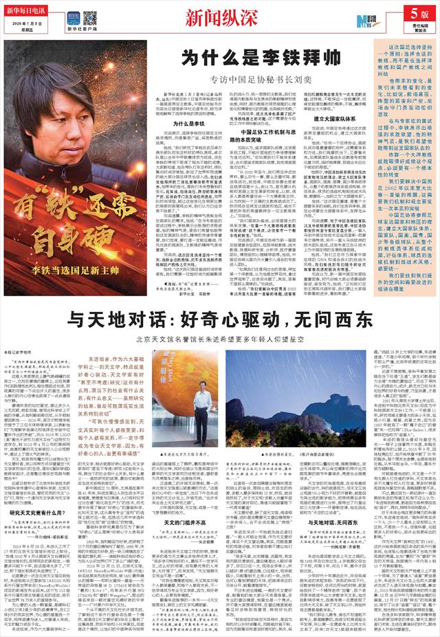 新华社北京1月2日电(记者马邦杰、公兵)中国足协2日宣布李铁就任新一届国家男足主教练。中国足协秘书长刘奕当日接受新华社记者专访,较为详细地解释了选择李铁的原因和逻辑。