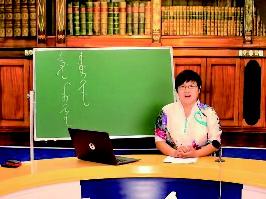 去年9月24日,对谭珊珊来说是个特别的日子。宁安市融媒体中心推出“满语学堂”系列讲座《跟我一起学满语》,采用演播室录播、线上放映的形式,为学员讲授满族书面语基础。每周一、周二晚7时40分,教学视频在当地广播电视台和官方微信公众号播出和推送。