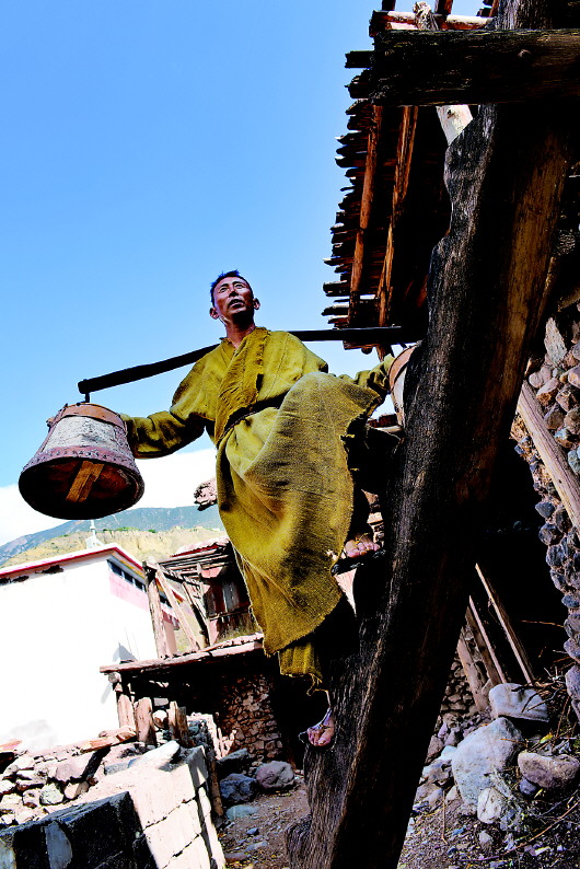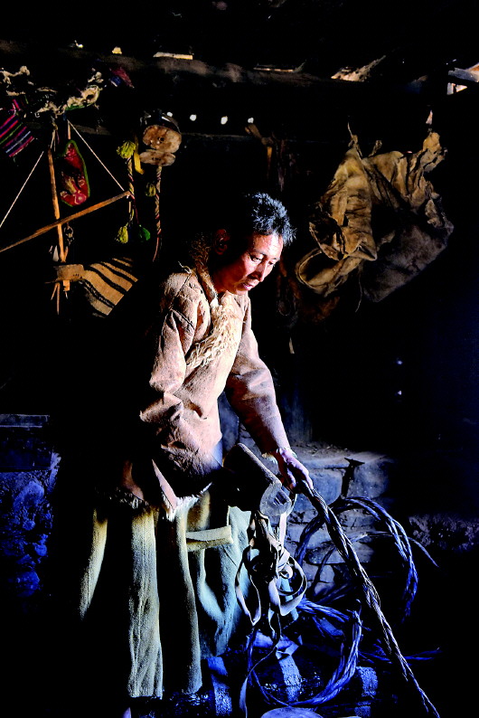 格松江错妈妈在自家民宿前等待远方来客。 |