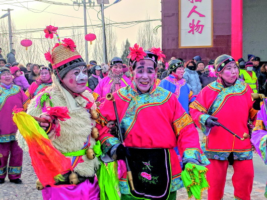 ▲1月2日腊八节,民间社火队正在表演。 本报记者张典标摄