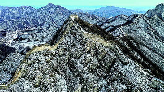 这是1月7日拍摄的北京箭扣长城雪景。近日,北京迎来降雪天气。雪后的箭扣长城内外,惟余莽莽,蔚为壮观。 新华社记者陈晔华摄