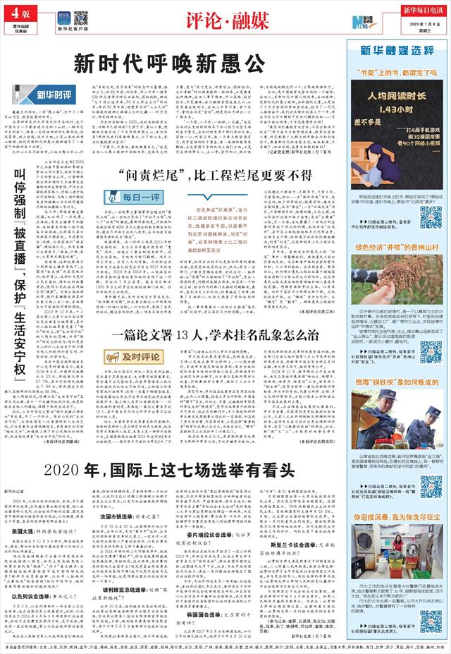 | ( 2020-01-08 ) 稿件来源:新华每日电讯 评论·融媒 |