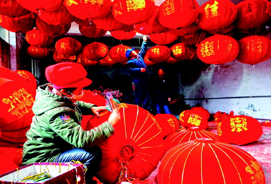 春节临近,石家庄市藁城区屯头村宫灯生产厂家赶制灯笼供应节日市场。藁城宫灯历史悠久,是省级非物质文化遗产。 新华社记者邢广利摄
