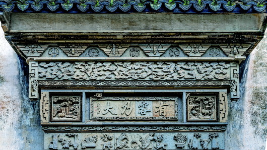 这些砖雕门楼上都刻有寓意深远、造型生动、工艺精湛的图案,且有醒目题词。这些题词,往往寄托了主人的思想理念、人生追求、治家宗旨等,可以说,某种程度上是主人的家训或家风。如民国元老张静江故居的“世守西铭”“有容乃大”,近代儒商名士张石铭旧居的“世德作求”“蓝田毓秀”,近代著名书画收藏家庞莱臣的“世泽遗安”“厚德载福”,民国北派画坛领军人物金家的“永建乃家”“心地芝兰”,上海新世界主人邱家的“唯适之安”等,字里行间无不闪烁着主人对家庭和后代的企盼、祝愿及训导、警示。