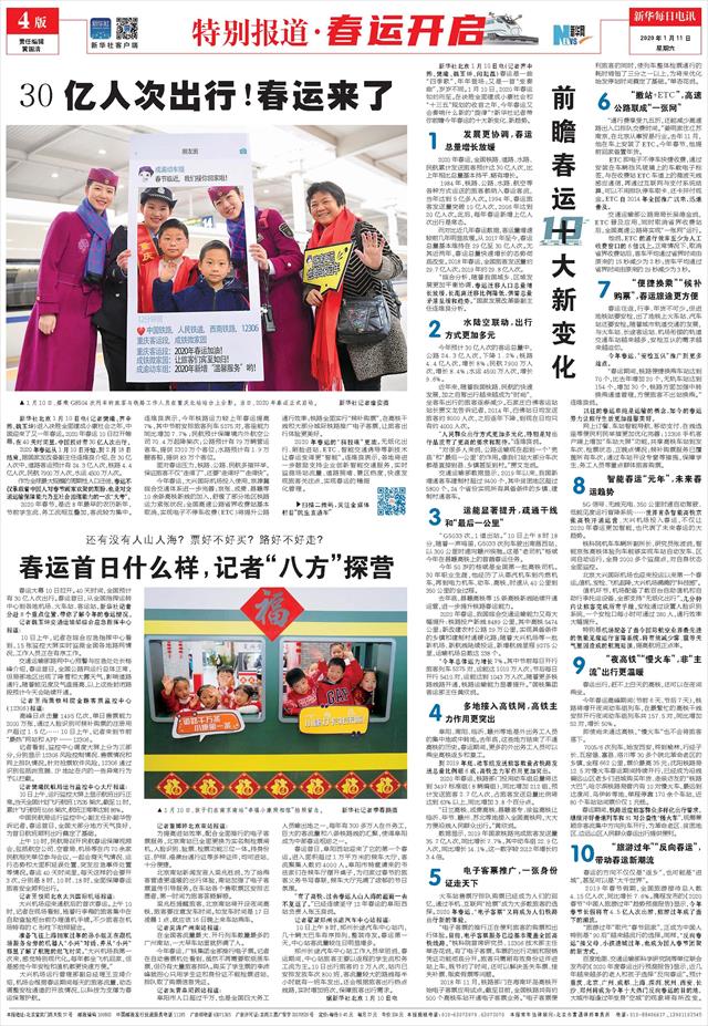( 2020-01-11 ) 稿件来源:新华每日电讯 特别报道·春运开启