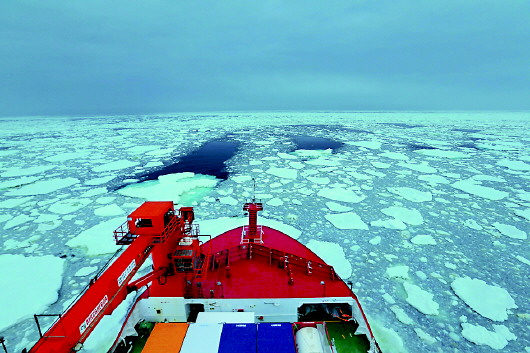 北京时间11日16时,中国第36次南极考察队在首航南极的“雪龙2”号极地科考破冰船上释放了第一个探空气球。 新华社记者刘诗平摄