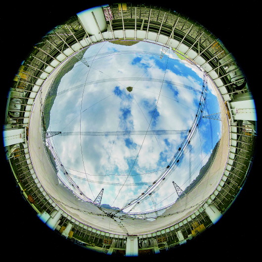 大——反射面由4450个反射单元构成,总面积为25万平方米,相当于30个标准足球场那么大。如果把它看成是一口盛满水的锅,容量够全世界每个人分到4瓶水。