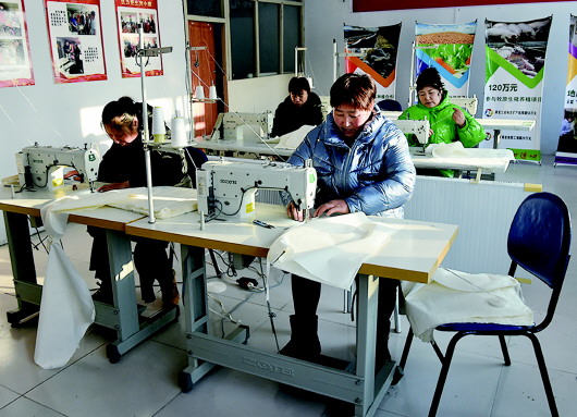 经集体研究,工作队想到,地质工作中需要大量地质样品袋,以前都是在外采购。村里许多妇女有缝纫的技能,可以让贫困户来制作,增加一份收入。
