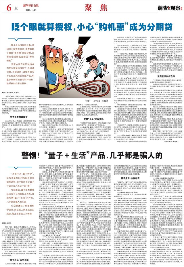 “假冒产品多了,将来大家对好的、坏的量子产品都会反感。”国内一位量子领域的科学家无奈地和记者说,量子概念的滥用对市场和产业的正常发展都是非常负面的。
