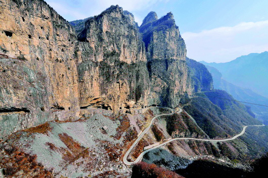 巍巍南太行,石崖林立。山西晋城陵川县境内,一条落差600多米、长约7.5公里的挂壁公路在悬崖峭壁上蜿蜒而下。