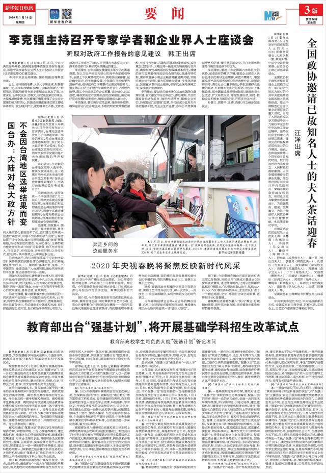 ( 2020-01-16 ) 稿件来源:新华每日电讯 要 闻