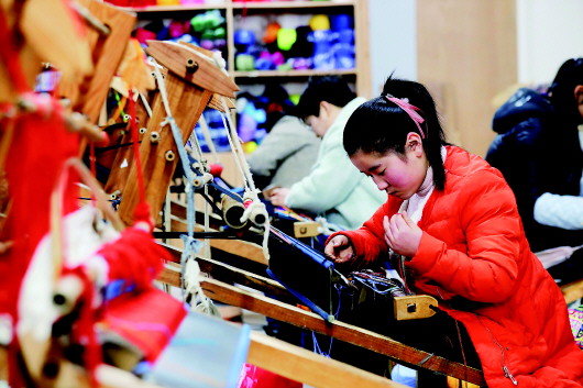 ◥1月14日,在重庆市黔江区小南海镇土家十三寨“西兰卡普扶贫工坊”,员工在编织西兰卡普。 春节将至,“西兰卡普扶贫工坊”的员工抓紧编织西兰卡普的手提包、家居装饰品、围巾等特色产品供应全国市场。 西兰卡普是土家族织锦,其编织技艺被列入首批国家级非物质文化遗产名录。 重庆市黔江区在脱贫攻坚中,把西兰卡普编织技艺与文化、旅游扶贫相结合,建起“西兰卡普扶贫工坊”,聘请西兰卡普技艺大师对留守妇女、贫困户进行培训,并将掌握编织技术的人员招聘到相关企业就业,既推动了非遗技艺的传承,又帮助贫困家庭实现了经济增收。 新华社发(杨敏摄) |
