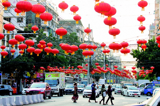 临近春节,缅甸仰光唐人街街头灯笼高挂,商铺摆满节庆所用的各式装饰物,洋溢着浓浓的年味。 新华社记者杜宇摄