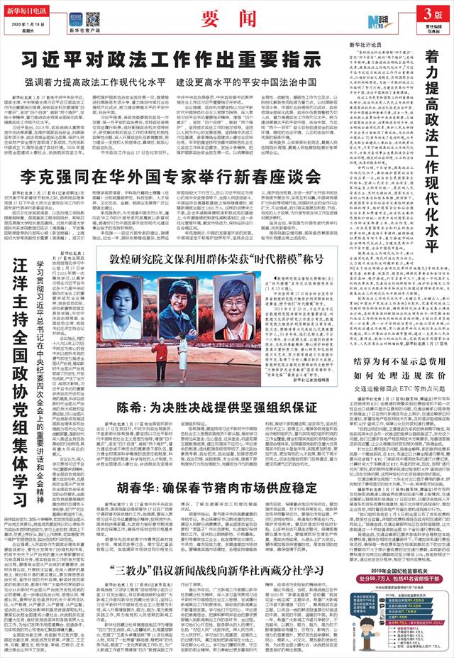 | ( 2020-01-18 ) 稿件来源:新华每日电讯 要 闻 |