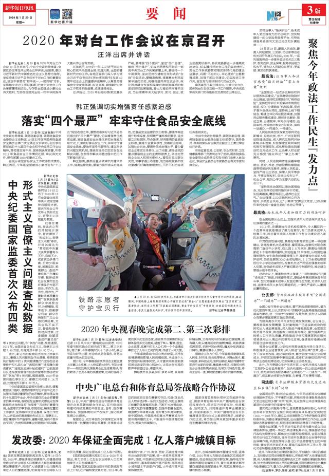 | ( 2020-01-20 ) 稿件来源:新华每日电讯 要 闻 |