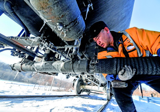 在长白山的林海雪原中,40多年来一直往返运行着一辆铁路“送水小火车”,为浑白线偏僻的火炬沟、影壁山、砬子河等17个工区、18个车站的500多名职工家属,以及沿线的2100多户居民运送生活用水。这列“送水小火车”40多年累计运行160多万公里,被当地人誉为林海里的“生命之舟”。 新华社记者许畅摄
