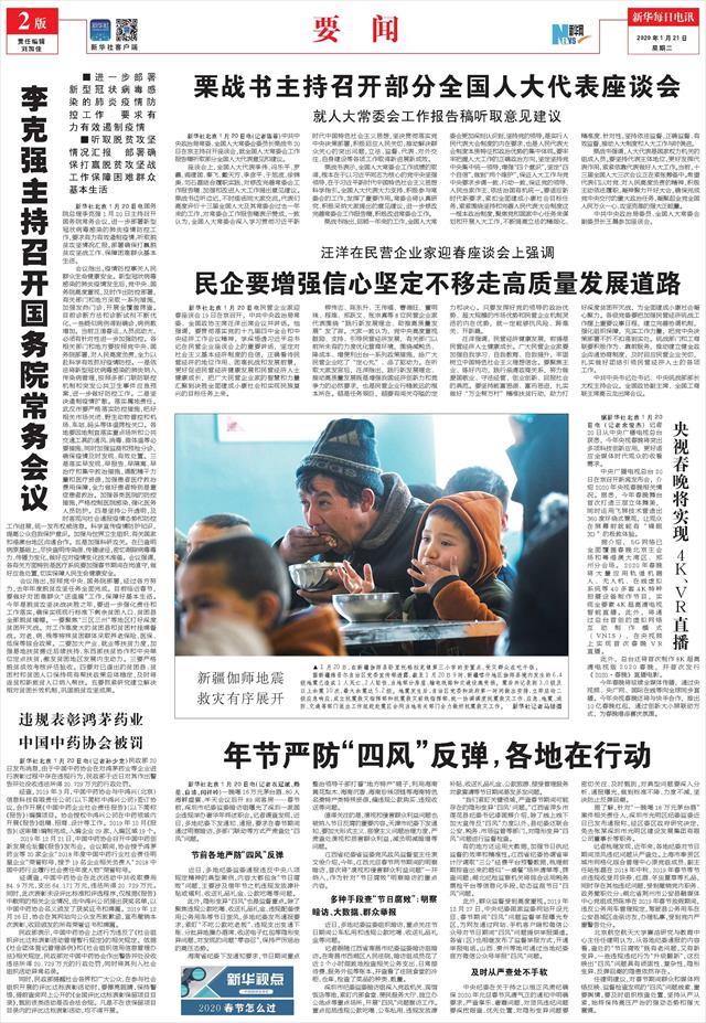 | ( 2020-01-21 ) 稿件来源:新华每日电讯 要 闻 |