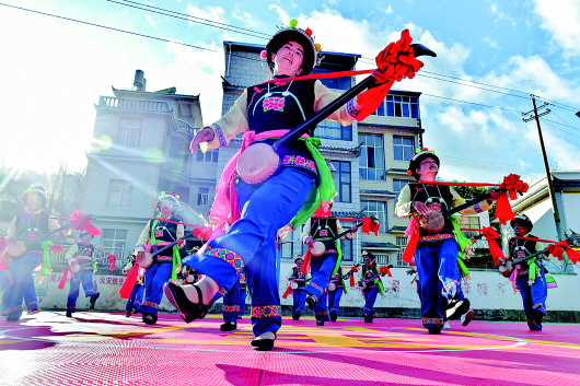 1月8日,云南大理南涧县碧溪乡回龙山村在进行“乡村春晚”彩排。 新华社发(适志宏摄) |