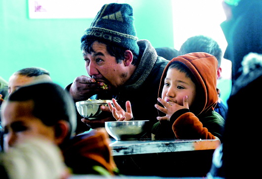 1月17日,上黄花塔拉嘎查集体过大年活动中大家一起吃饺子。本报记者刘磊摄 |