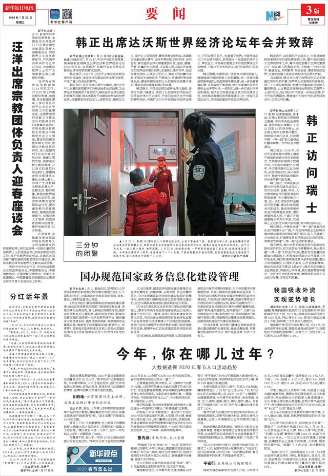 | ( 2020-01-22 ) 稿件来源:新华每日电讯 要 闻 |