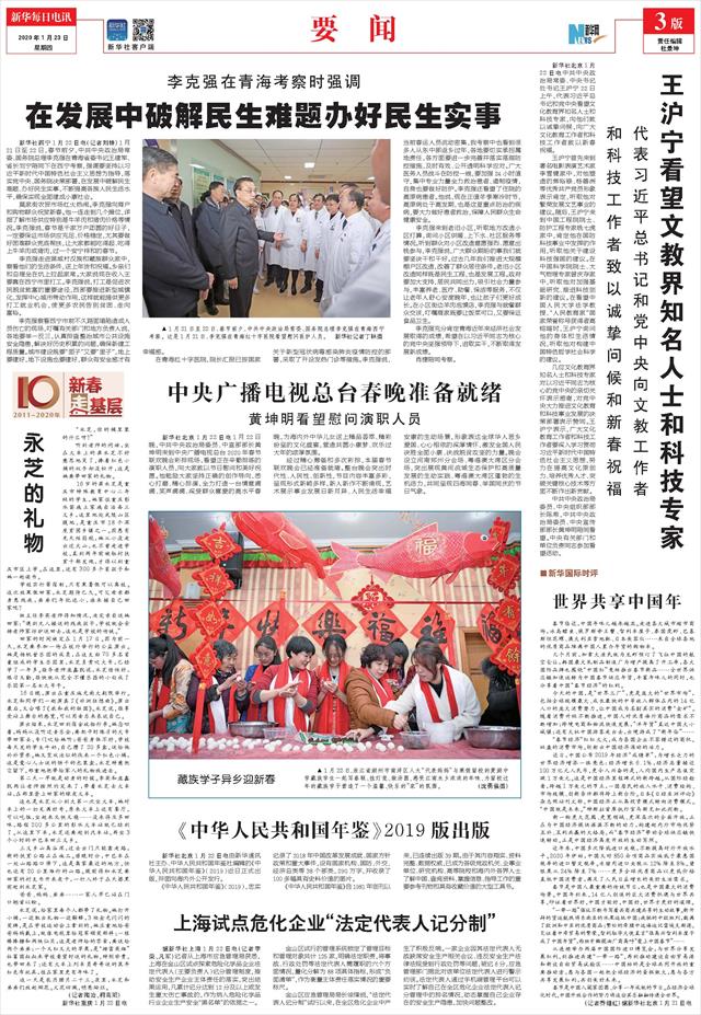 ( 2020-01-23 ) 稿件来源:新华每日电讯 要 闻