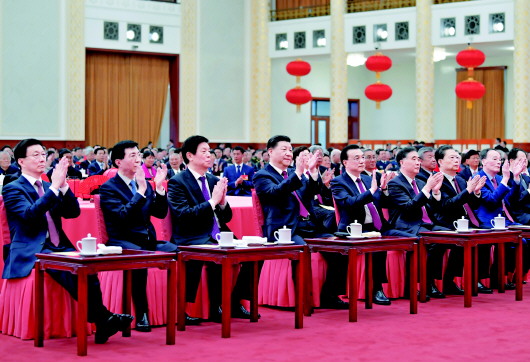 党和国家领导人李克强、栗战书、汪洋、王沪宁、赵乐际、韩正、王岐山等出席团拜会,李克强主持。