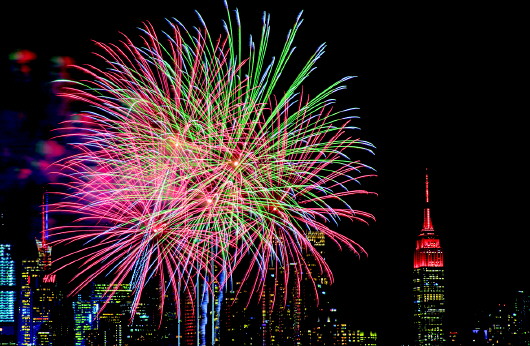 1月23日,焰火在美国纽约哈得孙河上空绽放。当日,美国纽约燃放新春主题焰火,庆祝即将到来的中国农历新年。 新华社记者王迎摄