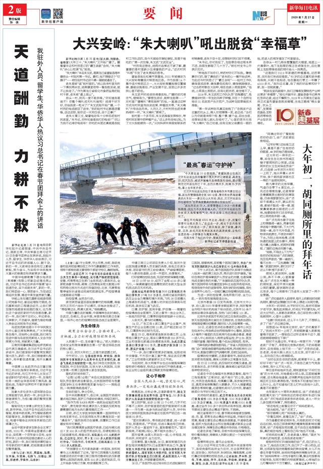 | ( 2020-01-27 ) 稿件来源:新华每日电讯 要 闻 |