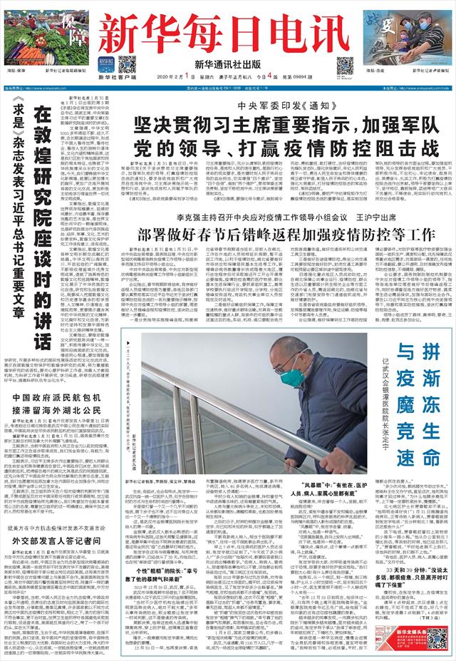 | ( 2020-02-01 ) 稿件来源:新华每日电讯 要 闻 |