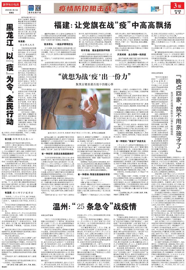 | ( 2020-02-02 ) 稿件来源:新华每日电讯 疫情防控阻击战 |