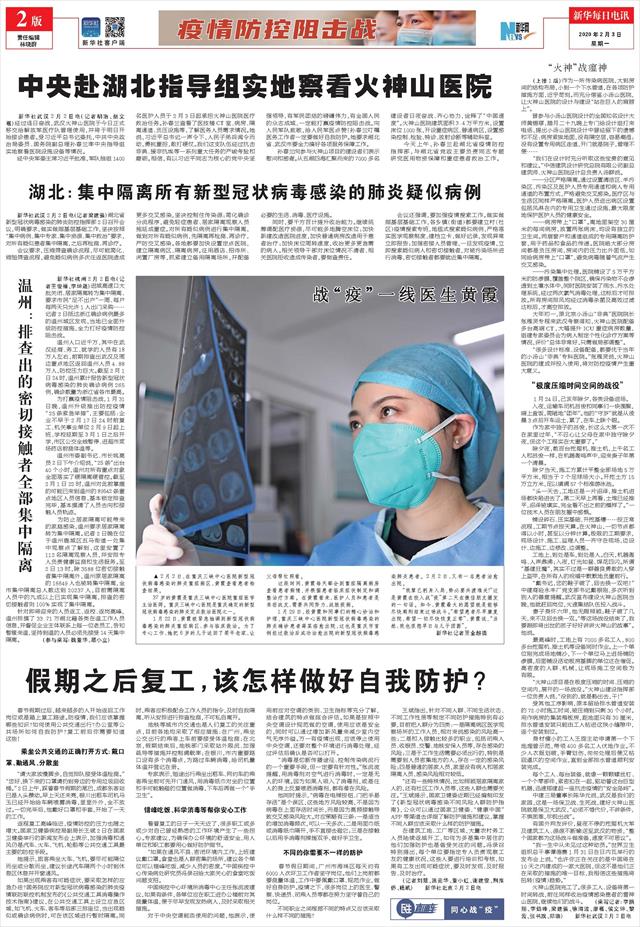| ( 2020-02-03 ) 稿件来源:新华每日电讯 疫情防控阻击战 |