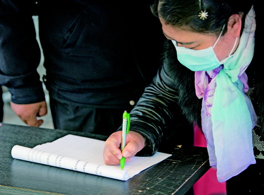 2月3日,居民在温州鹿城区某小区入口登记信息。新华社记者翁忻旸摄 |