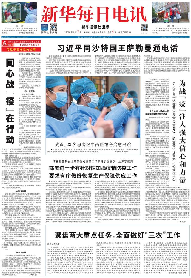 | ( 2020-02-07 ) 稿件来源:新华每日电讯 要 闻 |
