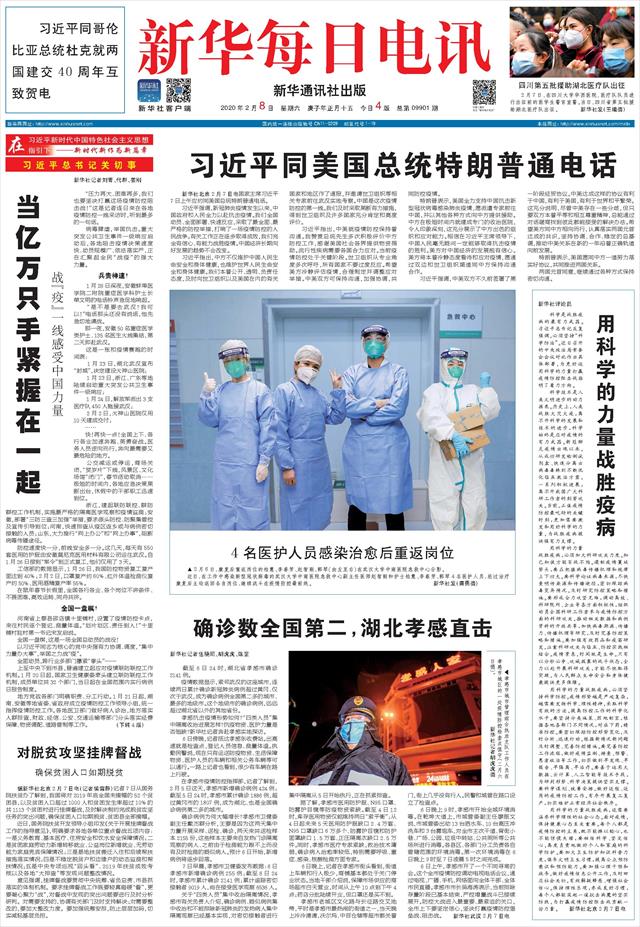 | ( 2020-02-08 ) 稿件来源:新华每日电讯 要 闻 |