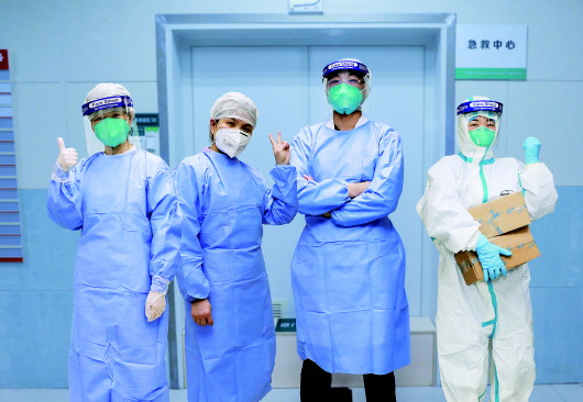 近日,在工作中感染新型冠状病毒的武汉大学中南医院急救中心副主任医师赵智刚和护士柏慧、李春芳、郭琴4名医护人员,经过治疗康复后主动返回各自岗位,继续战斗在疫情防控最前线。 新华社发(龚勇摄)