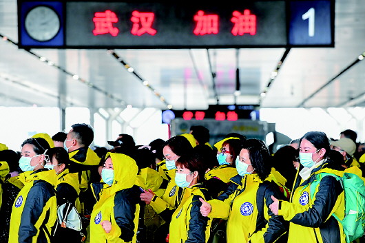 2月8日,中南大学湘雅二医院第三批支援湖北抗疫国家医疗队、湘雅三医院首批支援湖北抗疫国家医疗队启程前往武汉。 新华社记者陈泽国摄