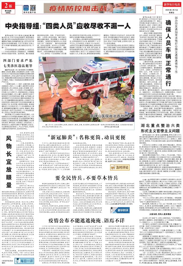| ( 2020-02-09 ) 稿件来源:新华每日电讯 疫情防控阻击战 |