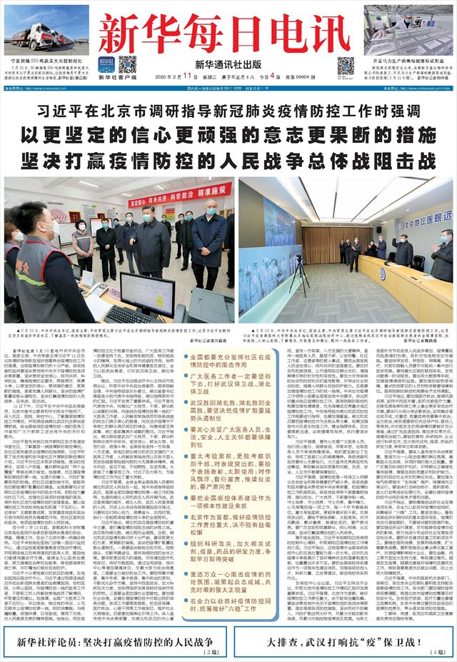 | ( 2020-02-11 ) 稿件来源:新华每日电讯 要 闻 |