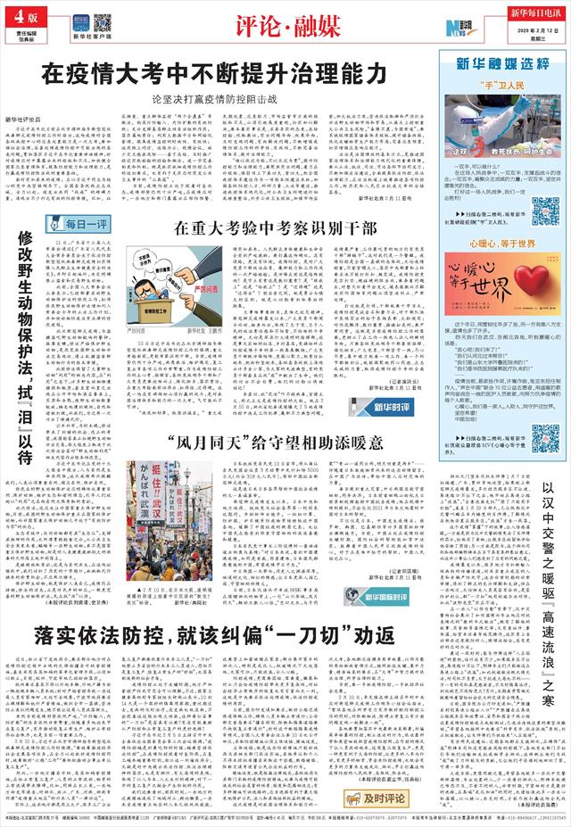 | ( 2020-02-12 ) 稿件来源:新华每日电讯 疫情防控阻击战 |