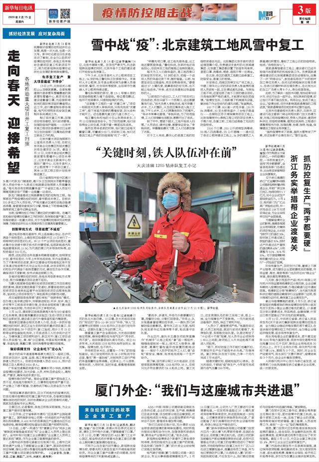 | ( 2020-02-15 ) 稿件来源:新华每日电讯 疫情防控阻击战 |