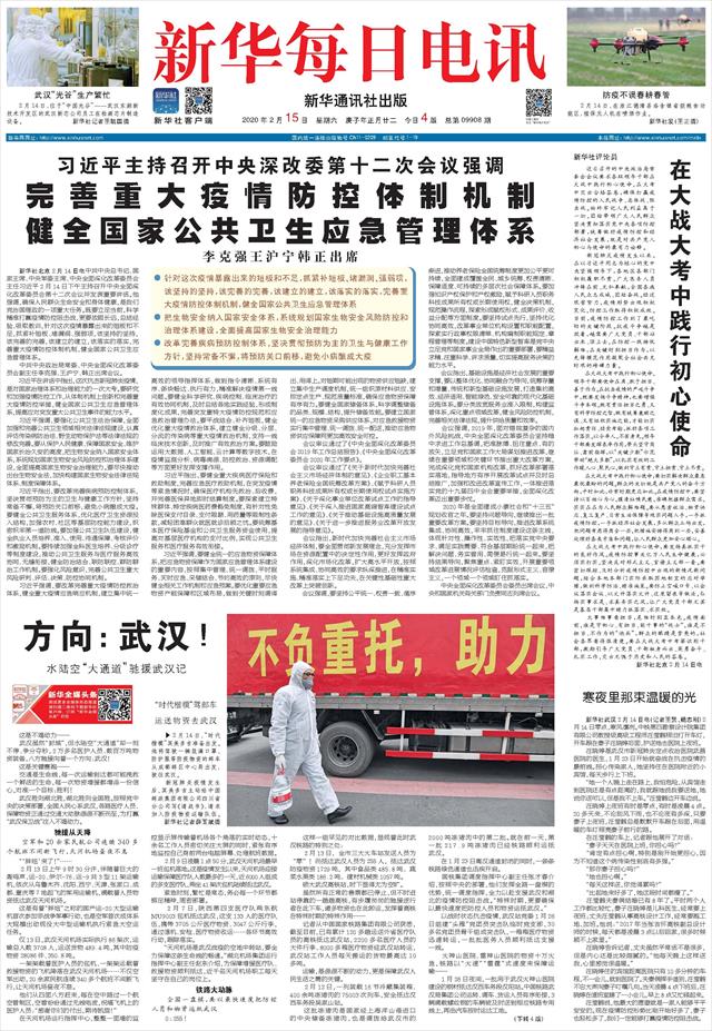 | ( 2020-02-15 ) 稿件来源:新华每日电讯 要 闻 |