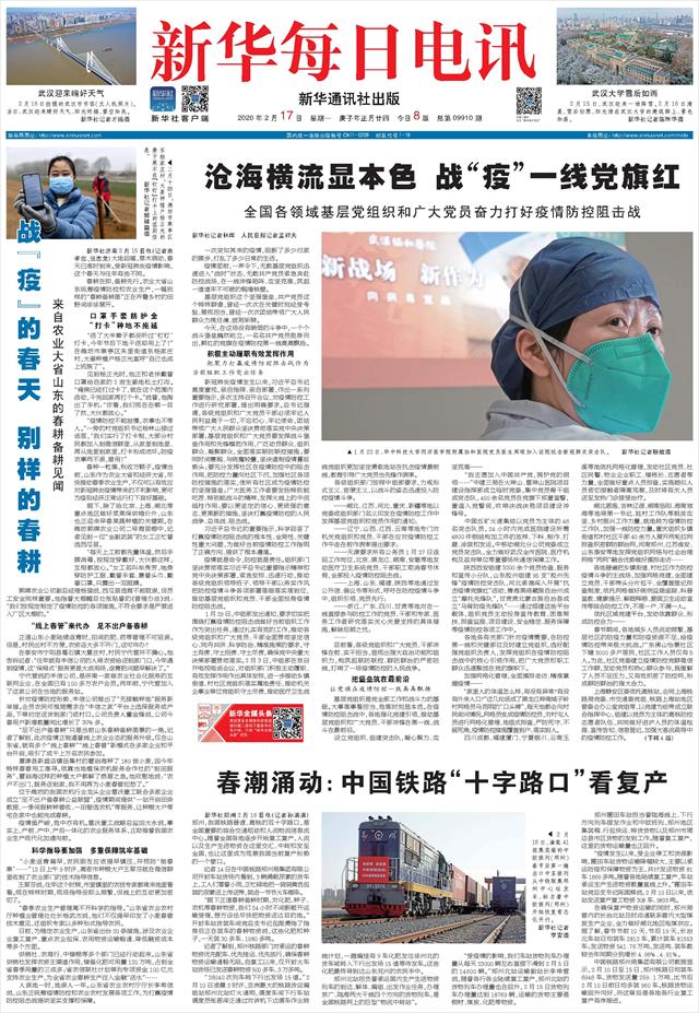 | ( 2020-02-17 ) 稿件来源:新华每日电讯 要 闻 |
