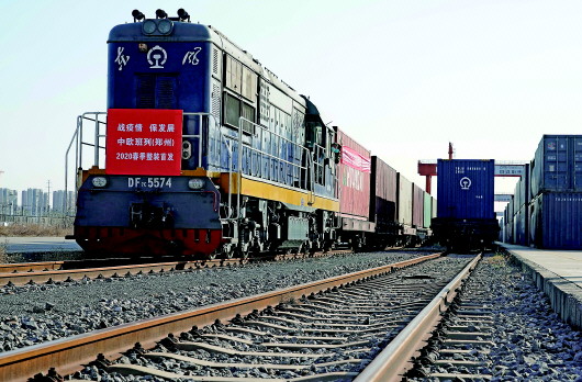 2月16日,满载41组集装箱的中欧班列(郑州)春节后第一趟出口中亚班列从中铁联集郑州中心站发车,标志着中欧班列(郑州)开始恢复常态化开行。新华社记者李安摄 |