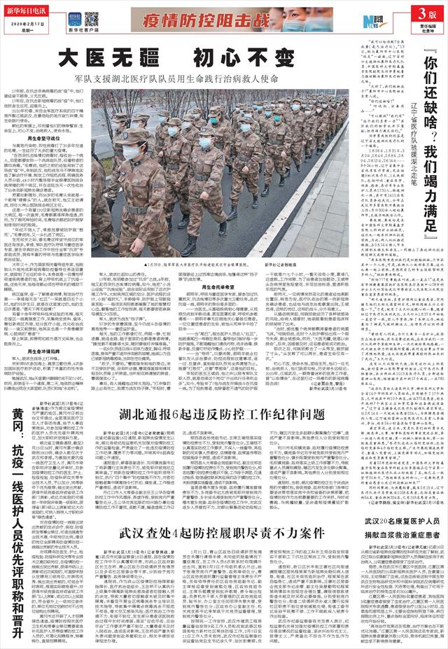 | ( 2020-02-17 ) 稿件来源:新华每日电讯 疫情防控阻击战 |