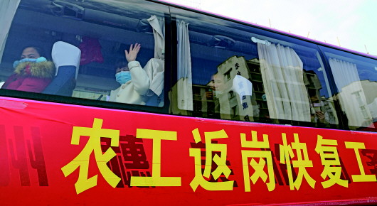 2月18日,广西首批粤桂扶贫劳务协作返岗专车从融安县发车,将57名农民工送往广东惠州。